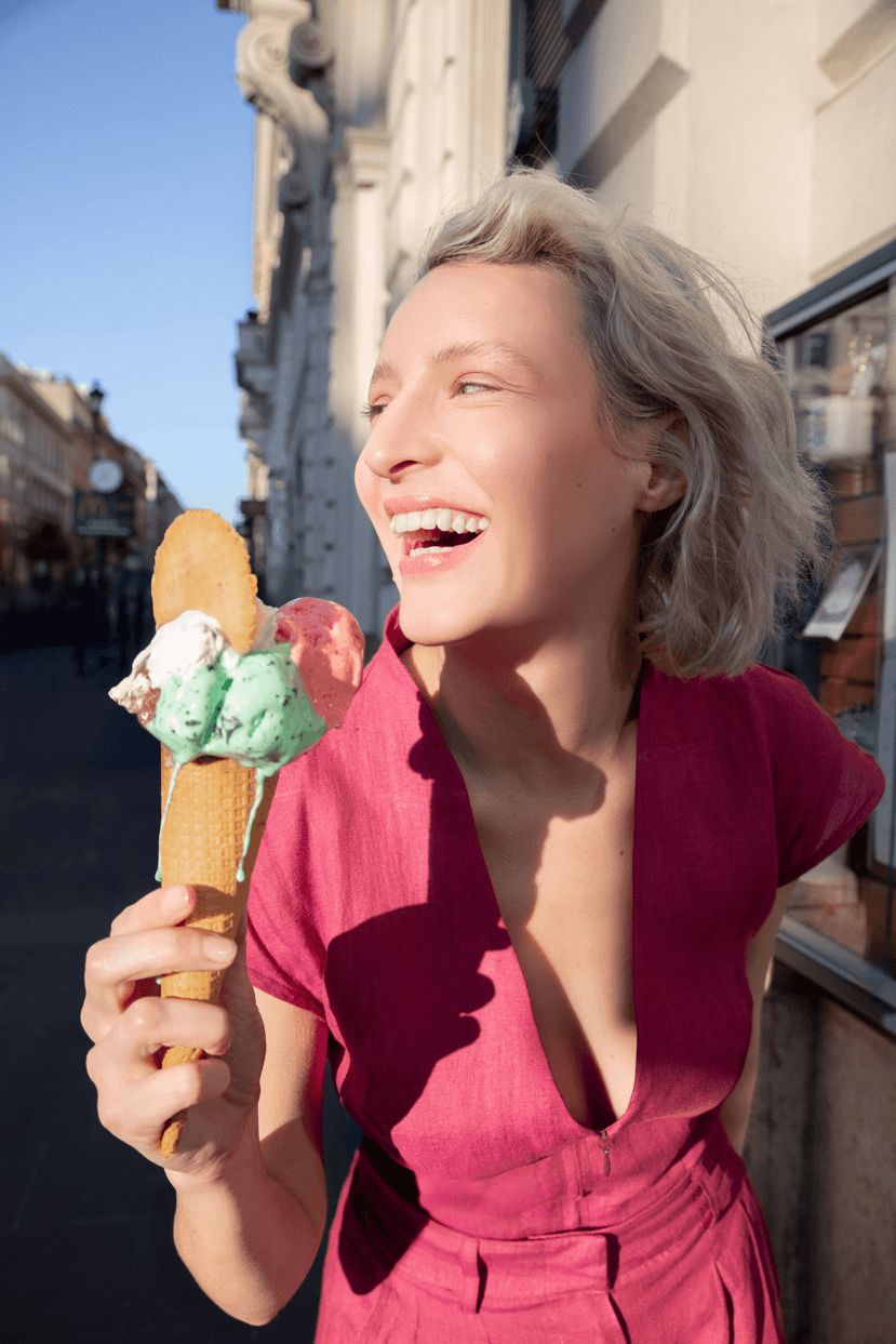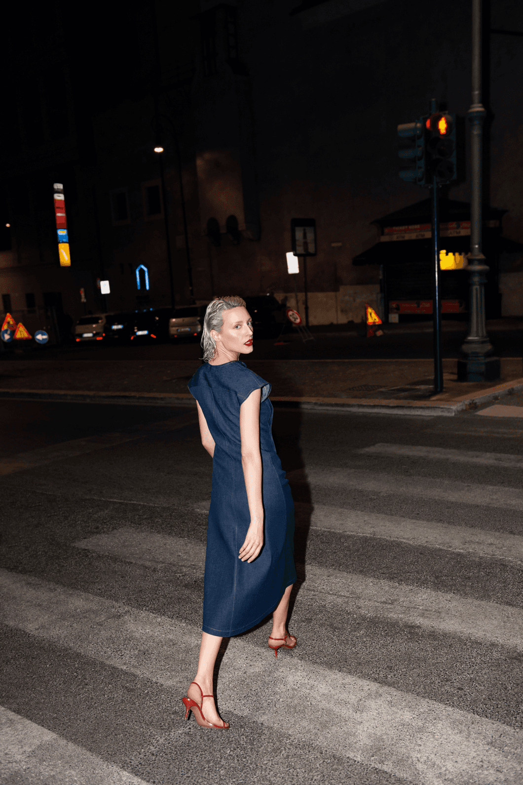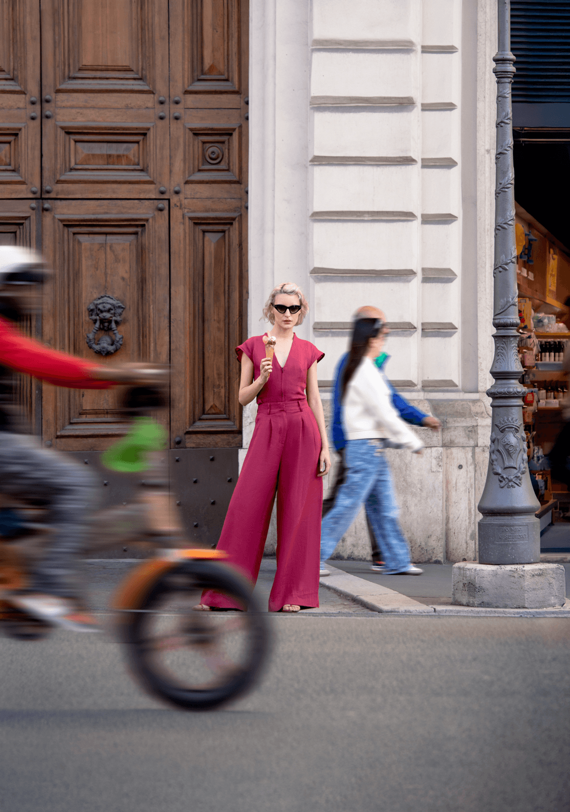 Abbiamo immaginato una donna che attraversa le strade assolate con il proprio passo, avvolta in essenziali raffinati e colori vibranti. Ogni capo è un manifesto di 'quiet attitude', realizzato in Italia con una profonda intenzione consapevole. Non è solo moda, è un invito a vivere la città con il tuo ritmo.